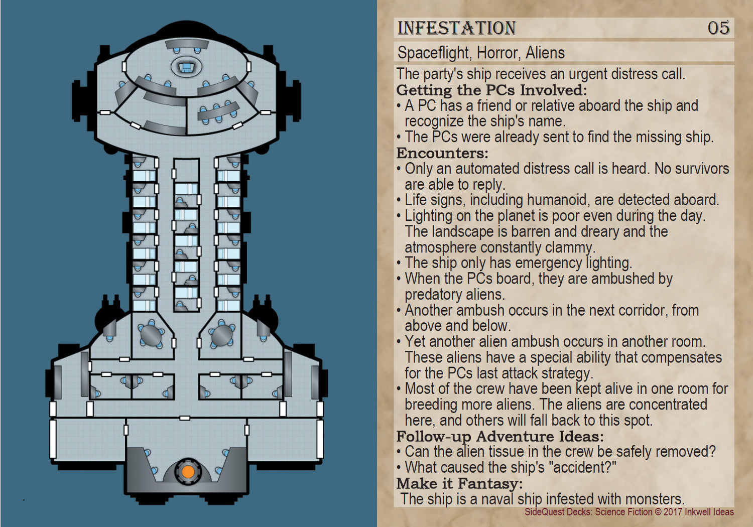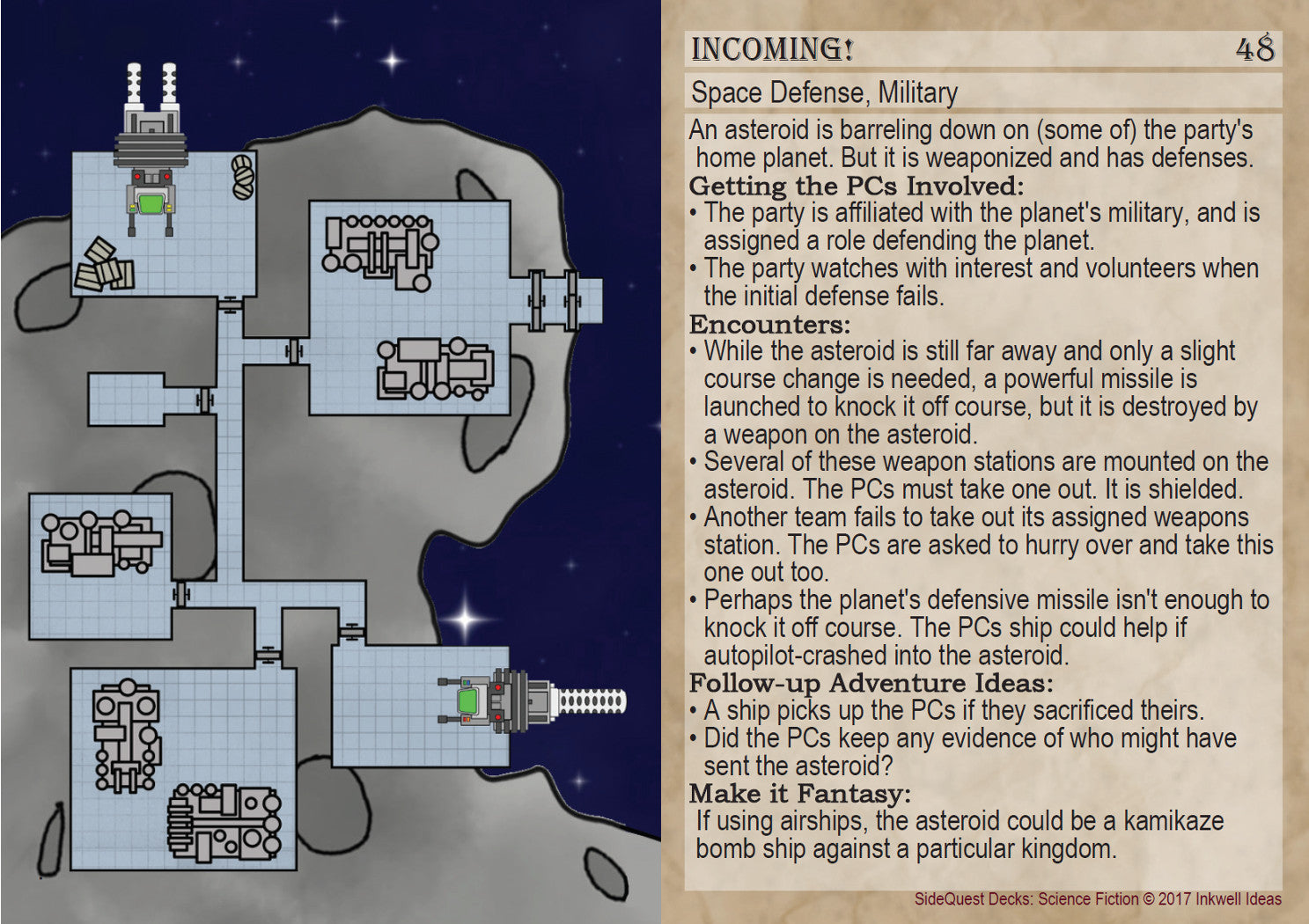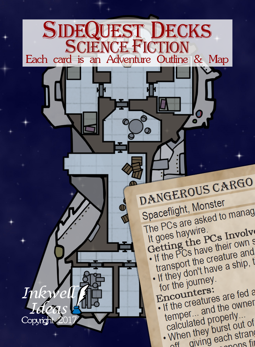 Need science fiction adventure ideas including ways to get the adventure started, several possible encounters along the way, and a couple of follow-up possibilities? Use our SideQuest Decks: Science Fiction!